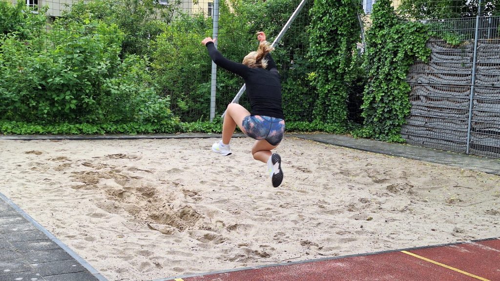 Jeden Mittwoch treffen sich die interessierten Leichtathleten in der Turnhalle unserer Schule. Der Anfang vom Training ist normalerweise um 13:45 Uhr, aber richtig los geht es erst nach einem Spiel zur Erwärmung mit den Tischtennisspielern. Trainiert wird für Wettkämpfe, die eigentlich erst ab der 7. Klasse beginnen. Auf Sprungkraft, Fitness, Technik und Kraft wird viel Wert gelegt. Die Trainingseinheiten die von Frau Kaps – Brettschneider beaufsichtigt werden, sind oft sehr spaßig gestaltet. An warmen Tagen wird auch draußen trainiert und Sprints, Starts und Sprünge geübt. Die Altersgruppe ist nicht festgelegt, aber meistens findet man eher doch die jüngeren Sportler und Sportlerinnen. Also freuen wir uns über jeden Sportler und jede Sportlerin, der oder die mittwochs von 13:45Uhr – 15:15Uhr Zeit und Interesse hat. Wer weiß, vielleicht stehst du ja bald auf dem Treppchen für unsere Schule.