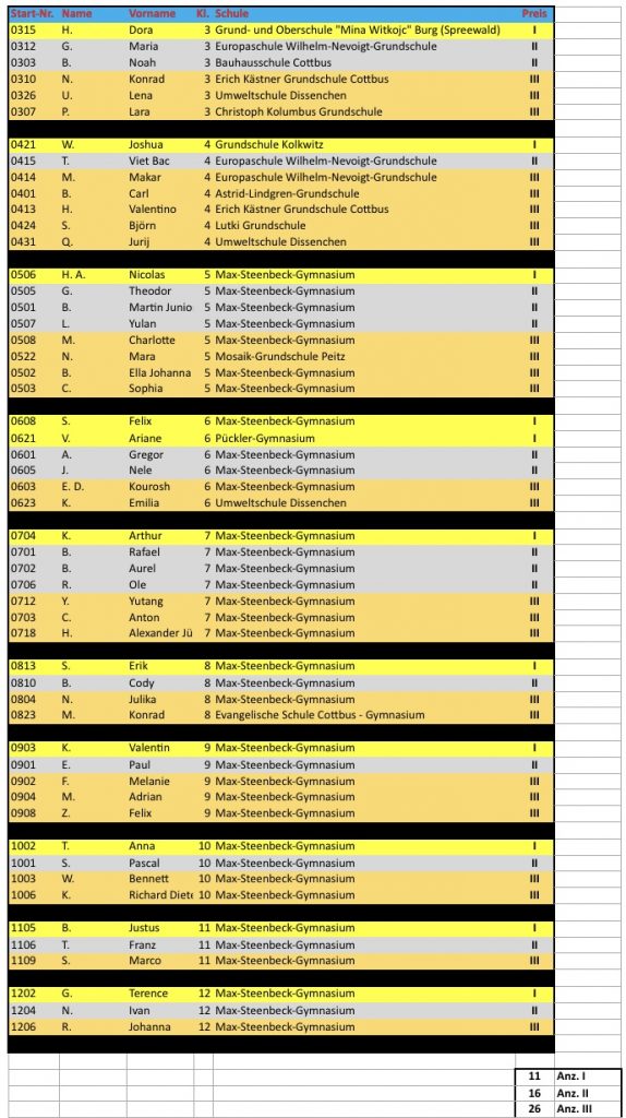 - Klassenstufe 4: Joshua W. (Grundschule Kolkwitz)