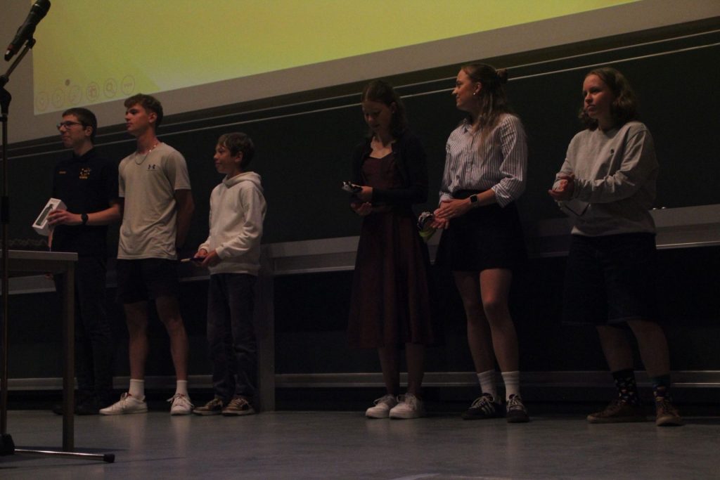Im sportlichen Teil der Veranstaltung berichteten Maria und Johanna aus der 10. Jahrgangsstufe über das Bundesfinale des Triathlons, für das sich unsere Schule im vergangenen Herbst erfolgreich qualifiziert hatte. Mit eindrucksvollen Bildern und einem persönlichen Bericht über die Reise und den Wettbewerb bekamen alle einen tollen Eindruck. Ein weiterer Höhepunkt war die Ehrung herausragender Leistungen und besonderer Verdienste. Zunächst wurden die Erstplatzierten der BIG Challenge ausgezeichnet – ein Englischwettbewerb, der alljährlich zahlreiche Teilnehmer aus unterschiedlichen Klassenstufen motiviert, ihre Sprachkenntnisse unter Beweis zu stellen. Auch die besten Klassen des „Stadtradelns“ erhielten Urkunden für ihr gemeinschaftliches Engagement im Zeichen von Nachhaltigkeit und Umweltschutz.