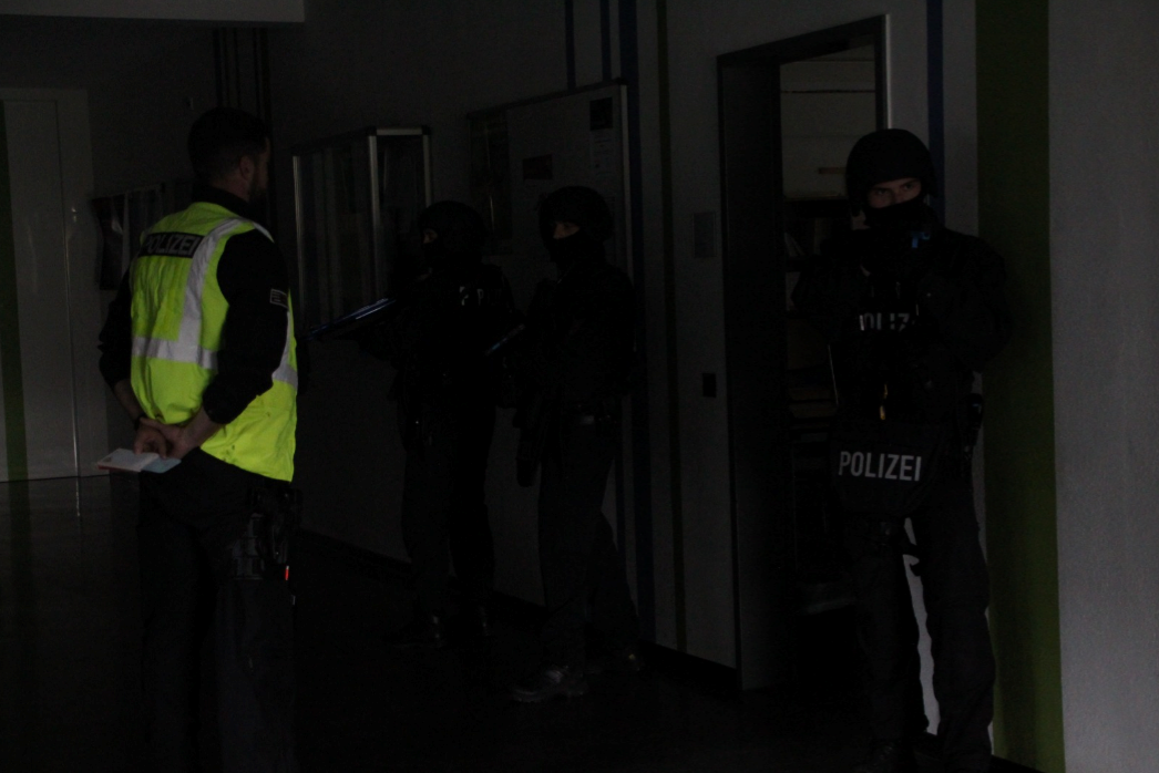 Insgesamt waren über 100 Personen beteiligt, darunter Einsatzkräfte der Polizeidirektion Süd und der Bereitschaftspolizei Brandenburg. Das ist ziemlich beeindruckend, wenn man bedenkt, dass all das komplett fernab des normalen Schulalltags passiert ist – wir Schüler waren ja gar nicht vor Ort.