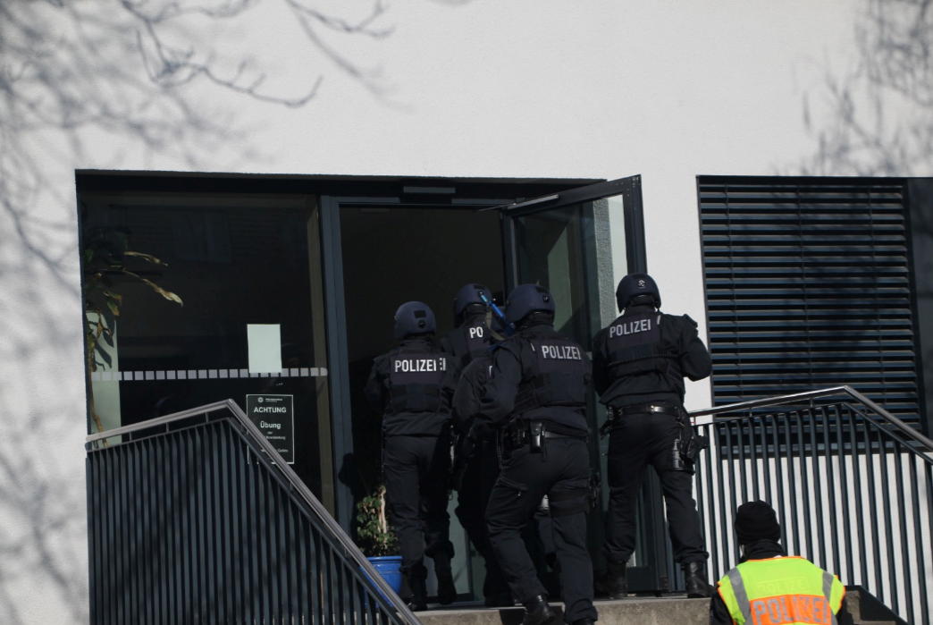 Die Polizei nutzte die schulfreie Zeit, um unter möglichst realistischen Bedingungen den Ernstfall zu proben. Dabei ging es vor allem um das taktische Vorgehen im Gebäude – wie Einsatzkräfte sich im Notfall schnell und koordiniert durch eine Schule bewegen, Gefahren einschätzen und für Sicherheit sorgen können. Dass so etwas ausgerechnet an unserer Schule passiert, ist extrem unwahrscheinlich – aber gerade deshalb ist es umso wichtiger, dass alle Abläufe sitzen, falls es doch einmal irgendwo zu so einer Ausnahmesituation kommen sollte.