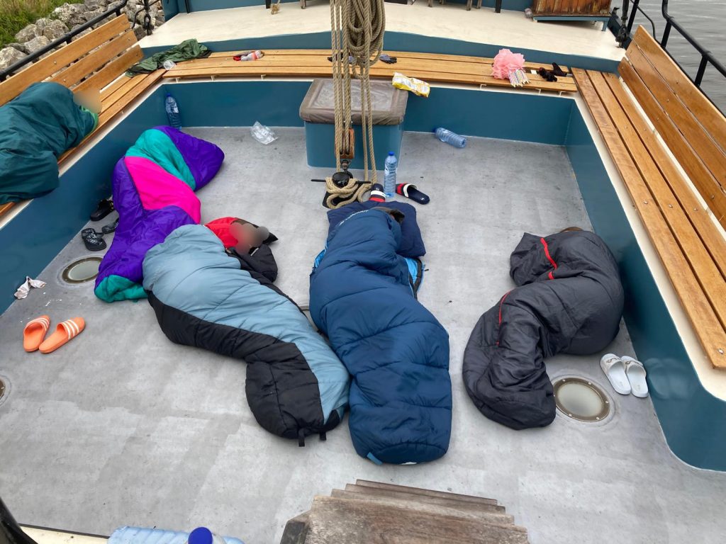 Gleich am ersten Tag war der Wind recht stark und die Wellen hoch. Um nicht seekrank zu werden, waren einige an Deck, während andere einfach tief und fest schliefen – was gut ging, da wir mit dem Bus die Nacht durchgefahren waren.