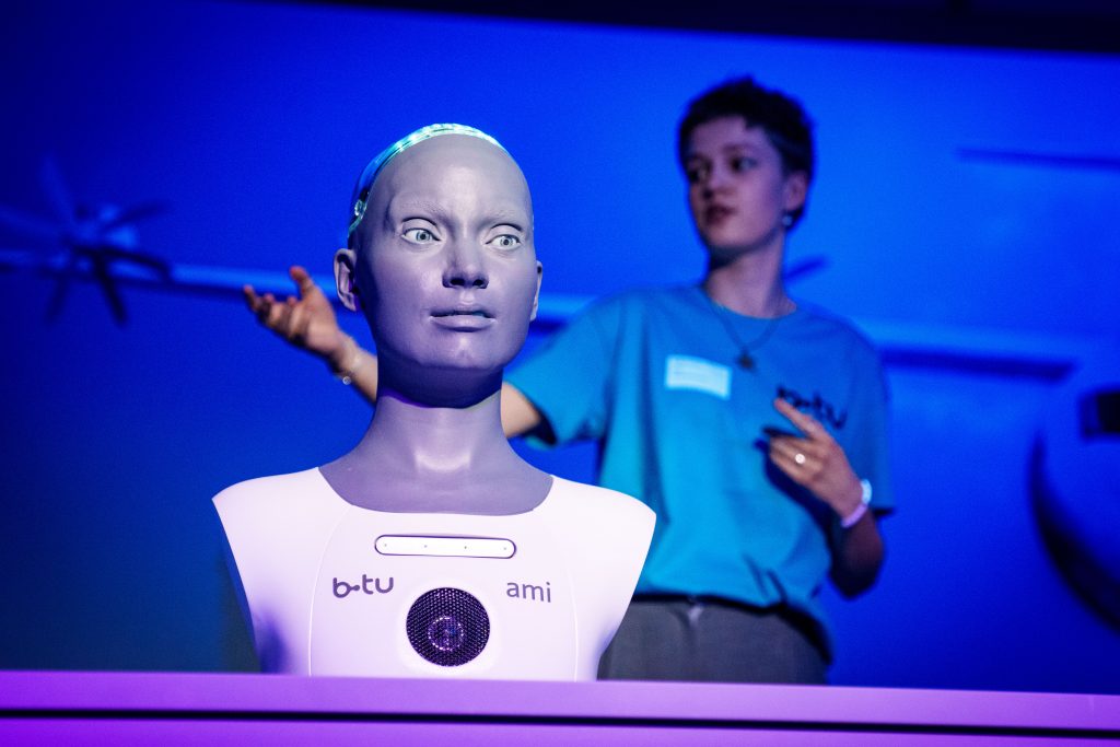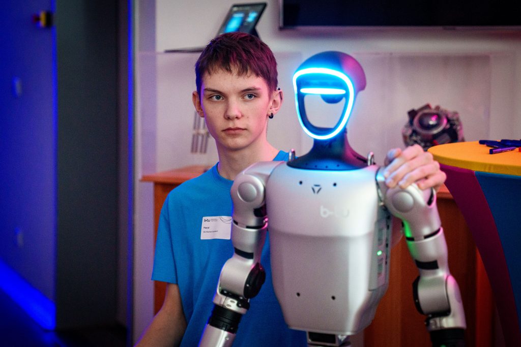 Interessierte Schülerinnen und Schüler unserer Schule konnten Ende März 2025 die neuen Roboter im DLR_School_Lab kennenlernen. Da gab es zum Beispiel Ami, eine Roboterbüste, die mit künstlicher Intelligenz (KI) ausgestattet ist. Deshalb kann man sich mit ihr fast wie mit einem echten Menschen unterhalten. Auch scheint sie menschliche Emotionen wie Freude, Überraschung, Wut zu zeigen. „Ami kann zum Beispiel echte Menschen vertreten, im Heimunterricht oder bei Geschäftsterminen. Sie kann auch Inhalte erklären, im Museum oder bei Stadtführungen“, erklärt Enya (17).