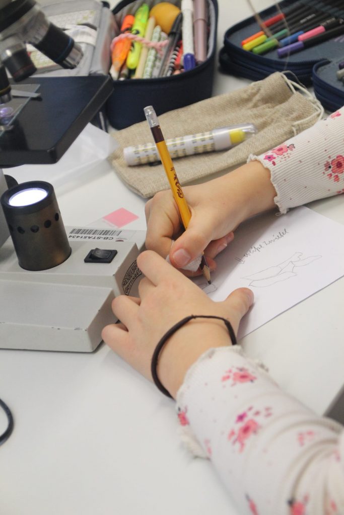 Wir haben auch einige Kinder aus der Science-AG gefragt, warum sie mitmachen. Die Antworten waren ganz unterschiedlich. Matilda wollte zur Science-AG kommen, weil sie unsere Schule kennenlernen wollte. Am Anfang war sie sehr nervös, aber inzwischen fühlt sich alles ganz normal an. Ihr macht die AG viel Spaß und sie merkt, dass sie ordentlicher arbeitet. Karl war am Anfang gar nicht nervös. Er findet, dass der Unterricht in der Science-AG spannender ist und besser erklärt wird als normaler Unterricht. Nur das Einstellen eines Mikroskops fand er zunächst schwierig. Bisher konnte er viele neue Dinge lernen und ausprobieren.