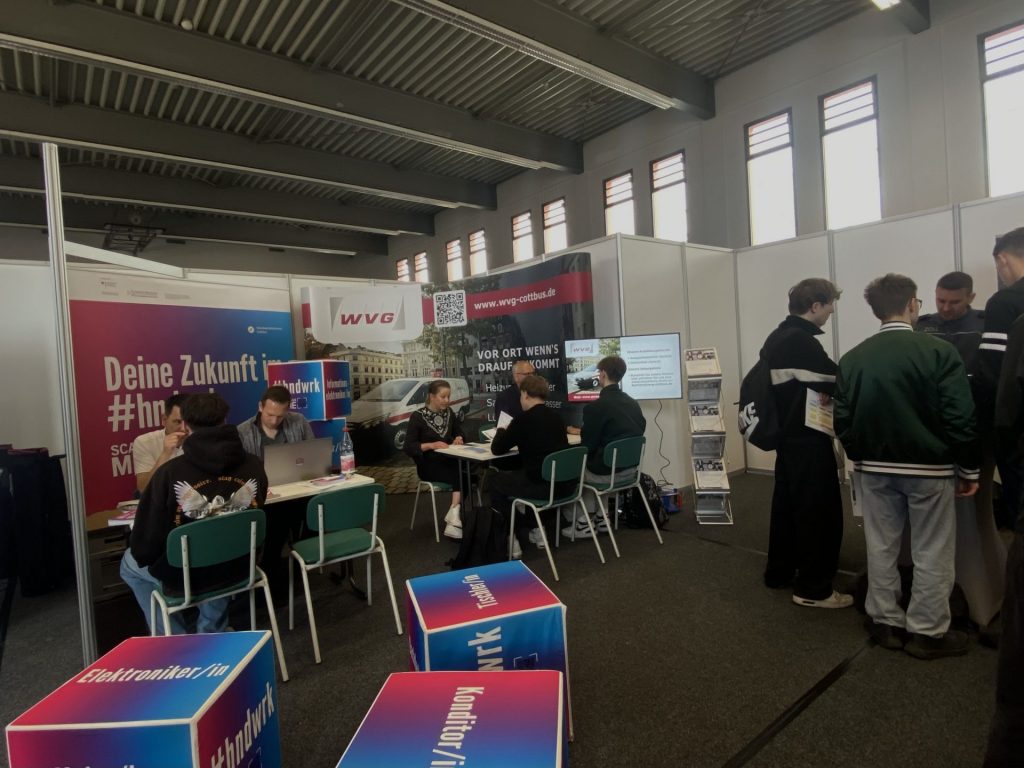 Am 21.05.2025 fand die vocatium-Messe in Cottbus statt. Es ist eine Berufsorientierungsmesse für Schülerinnen und Schüler, um einen Einblick in die Berufswelt zu erhalten. Im Februar hatten wir eine Informationsveranstaltung mit wesentlichen Informationen zum Ablauf und konnten dort auch Fragen stellen. Im Anschluss durften wir uns bis zu vier verschiedenen Unternehmen aussuchen, mit denen dann für uns Gesprächstermine vereinbart wurden. Vor Ort waren in zwei Hallen viele Unternehmen wie die Bundeswehr, DM, verschiedene Hochschulen und unter anderem auch die BTU. Diese Berufsmesse war sehr hilfreich, um erste Eindrücke von den Unternehmen zu erhalten und persönlich mit Vertretern zu sprechen. Die Gesprächstermine und damit erste persönliche Kontakte sind das Besondere der „vocatium“. Wir wurden beim gesamten Prozess sowie vor Ort von Frau Krüger unterstützt.